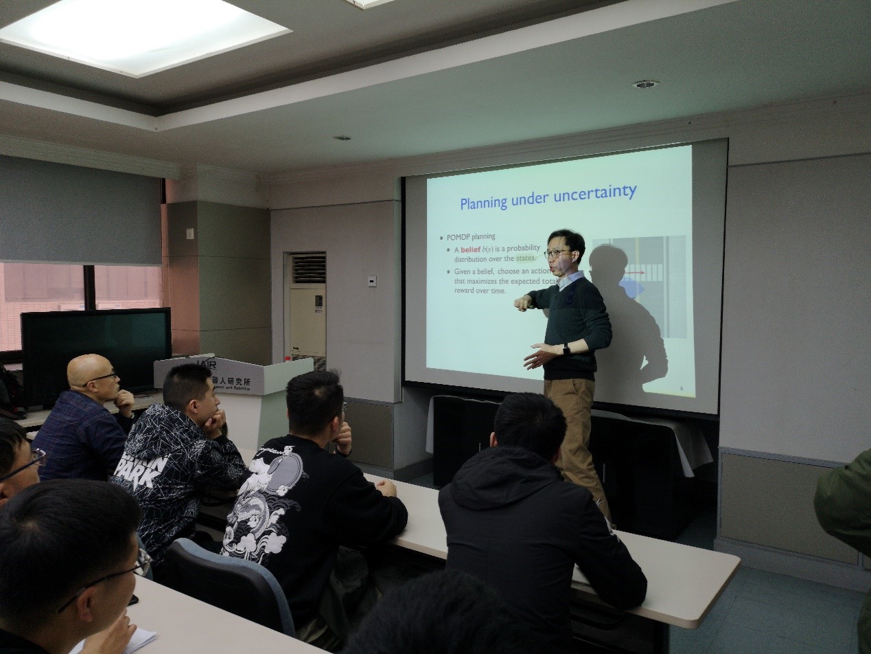 新加坡国立大学先进机器人中心副主任David Hsu教授于2019年11月27日至2019年12月1日期间应邀来访威廉希尔中国官网。Hsu教授获斯坦福大学计算机系博士,曾在麻省理工学院和卡内基梅隆大学担任访问学者,IEEE Fellow。他的研究涉及机器人学、人工智能和计算结构生物学。Hsu教授为西安交通大学师生做了三次有关不确定条件下的决策的讲座,并与威廉希尔中国官网人机协作组进行了深入的交流。