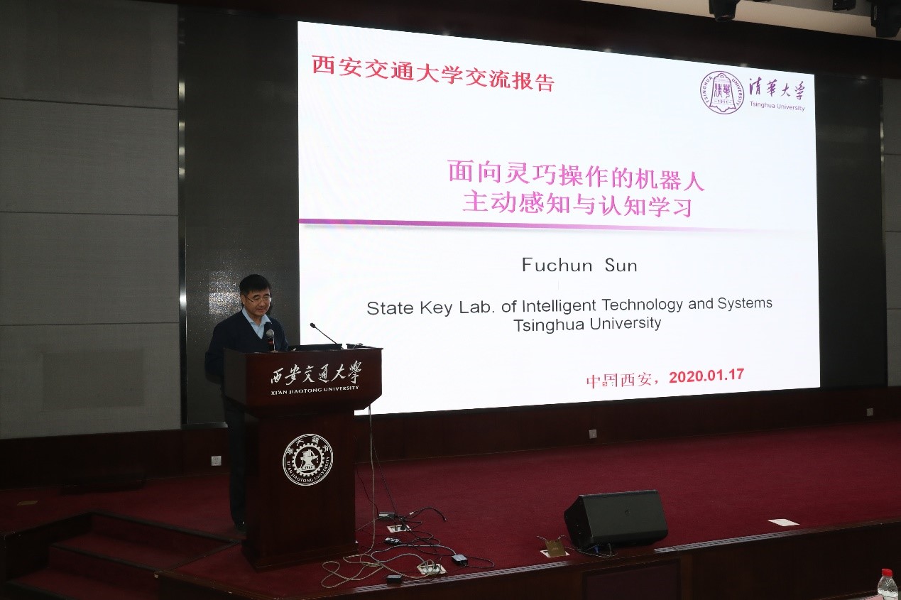 2020年1月17日,西安交通大学人工智能与机器人研究所暨威廉希尔中国官网2019年度年终总结会顺利召开。研究所全体师生参加了此次大会,特邀嘉宾清华大学孙富春教授、中科院自动化所胡占义研究员、浙江大学刘妹琴教授、潍柴动力智能车研发主任王学鹏、西安交通大学教务处徐忠锋处长、科研院黄忠德常务副院长、人力资源部张磊副部长和电信学部梁莉书记一同出席了会议。会议主要内容包括研究所2019年度工作总结、特邀嘉宾报告、研究生学术报告、先进师生表彰奖励和学生俱乐部换届等活动。威廉希尔中国官网常务副院长辛景民教授、人工智能与机器人研究所副所长刘跃虎教授、人工智能学院书记兰旭光教授主持了会议。