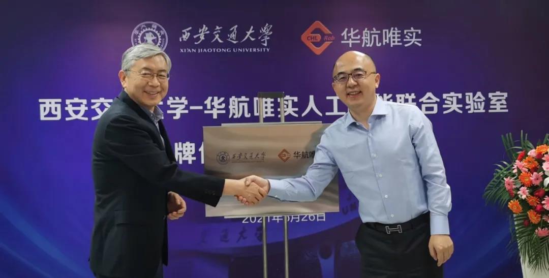 “西安交通大学—华航唯实人工智能联合实验室”立足人工智能赋能智能教育产业布局和发展方向,加强自主创新、加速成果转化,在人工智能等方面开展全方位合作,以实现“促进人工智能相关领域科学研究、推动人工智能赋能智能教育”的愿景。