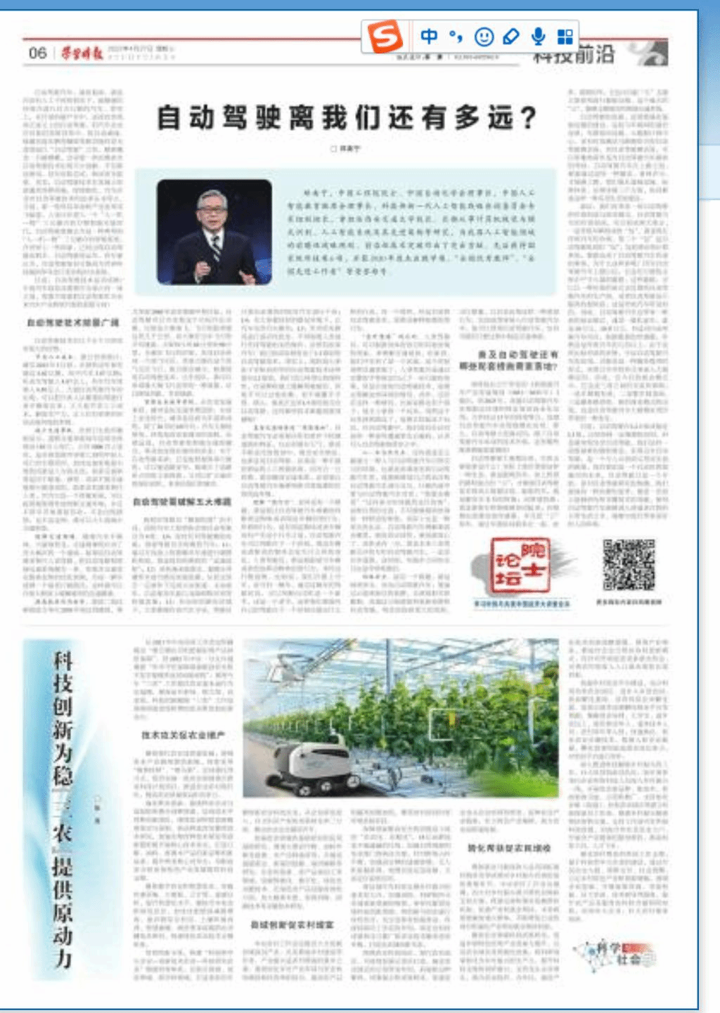 目前,自动驾驶在L2.5级或接近L3级,已经得到一定规模的应用,但是要实现完全自动驾驶,我们还有一段很艰难的路程要走。实现完全自动驾驶,是一个令人兴奋却又望而生畏的挑战,我们要创造一个自动化智慧城市的未来,自动驾驶只是一个开始。面对自动驾驶研究的热潮,我们要保持一种冷静的思考,要进一步加大基础研究和关键技术的突破,使得自动驾驶汽车能够进入普通老百姓的日常生活之中,能够为我们带来更好的人居环境。