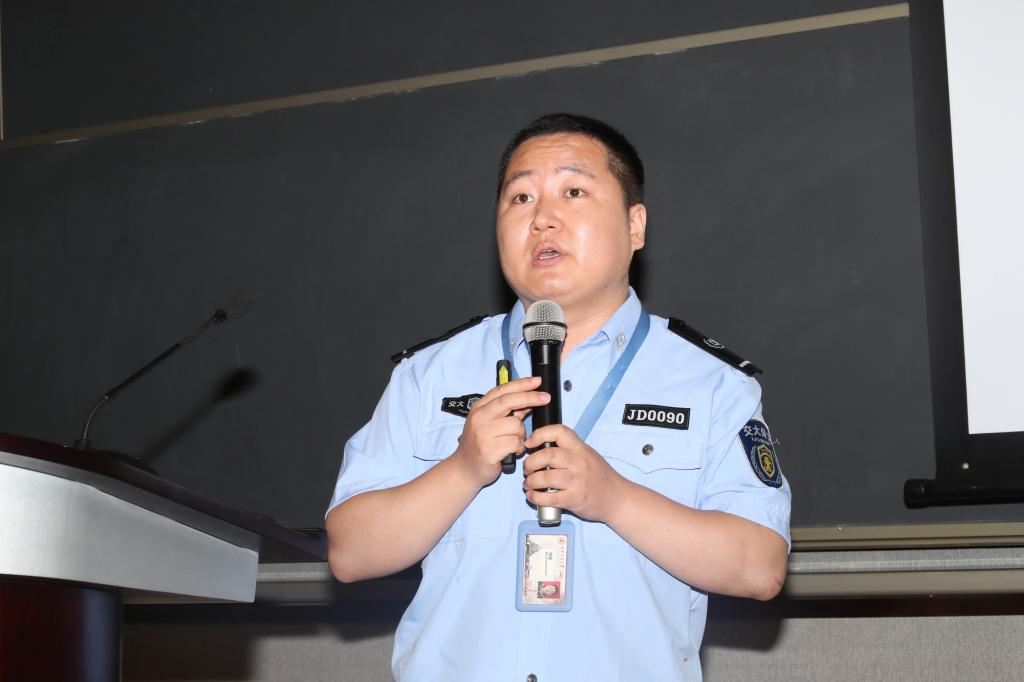 保卫处常帅老师做安全专题教育,包括校园安全和电信诈骗等多个主题。
