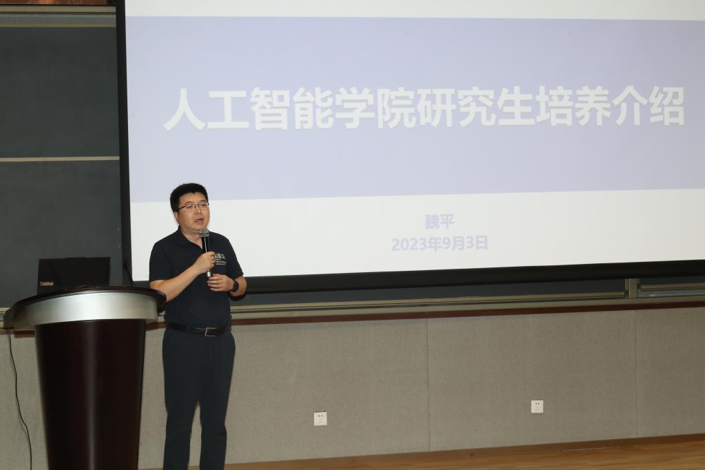 威廉希尔中国官网副院长魏平教授介绍研究生培养体系,重点向学生们介绍了硕士、博士的学习年限,课程学习的必修环节和要求,重点强调了需要遵守的学术道德规范,知识产权保护与技术保密制度和考勤制度。
