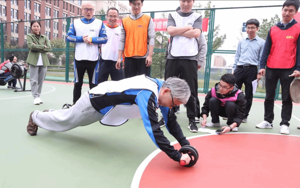 到达创新港简单休整后,趣味运动会正式开始。本次运动会的口号是“汇聚热血,挑战极限,运动盛宴,等你来战”,全体师生精神抖擞,穿着统一的队服欢快出场。参赛队伍包括教师队伍2组(华山论剑队、秦朝雄风队)、学生队伍4组(西楚霸王队、南海蛟龙队、北方之狼队、大唐威武队)。比赛项目包括划船机、俯卧撑、健腹轮、拔河等,现场欢呼声、呐喊声、加油声不断,整场运动会充满挑战性和趣味性,气氛十分热烈。