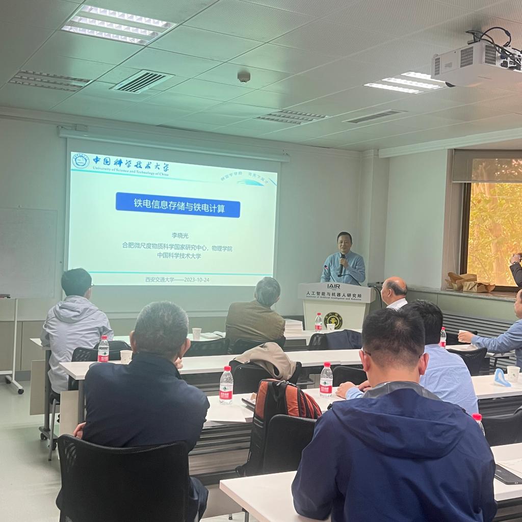 在研讨会主旨报告环节,中国科学技术大学讲习教授、博士生导师、国家杰出青年基金获得者李晓光教授做了《铁电信息存储与铁电计算》的报告。详细讲述电子材料及信息存储和能量转换器件的相关研究。