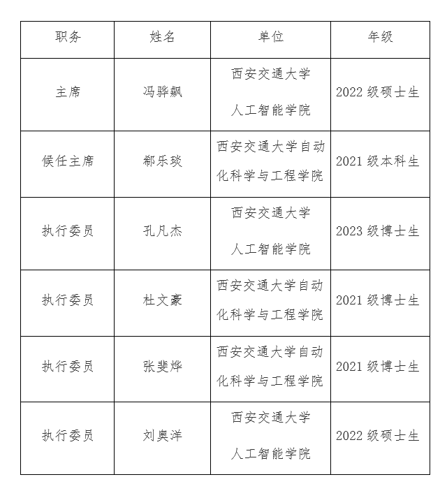 中国自动化学会西安交通大学学生分会执行委员会名单