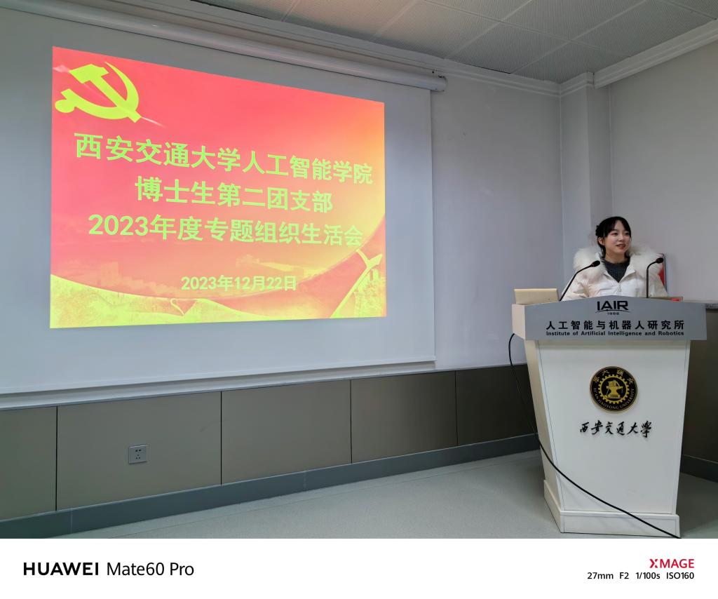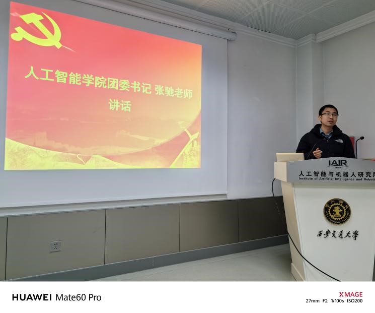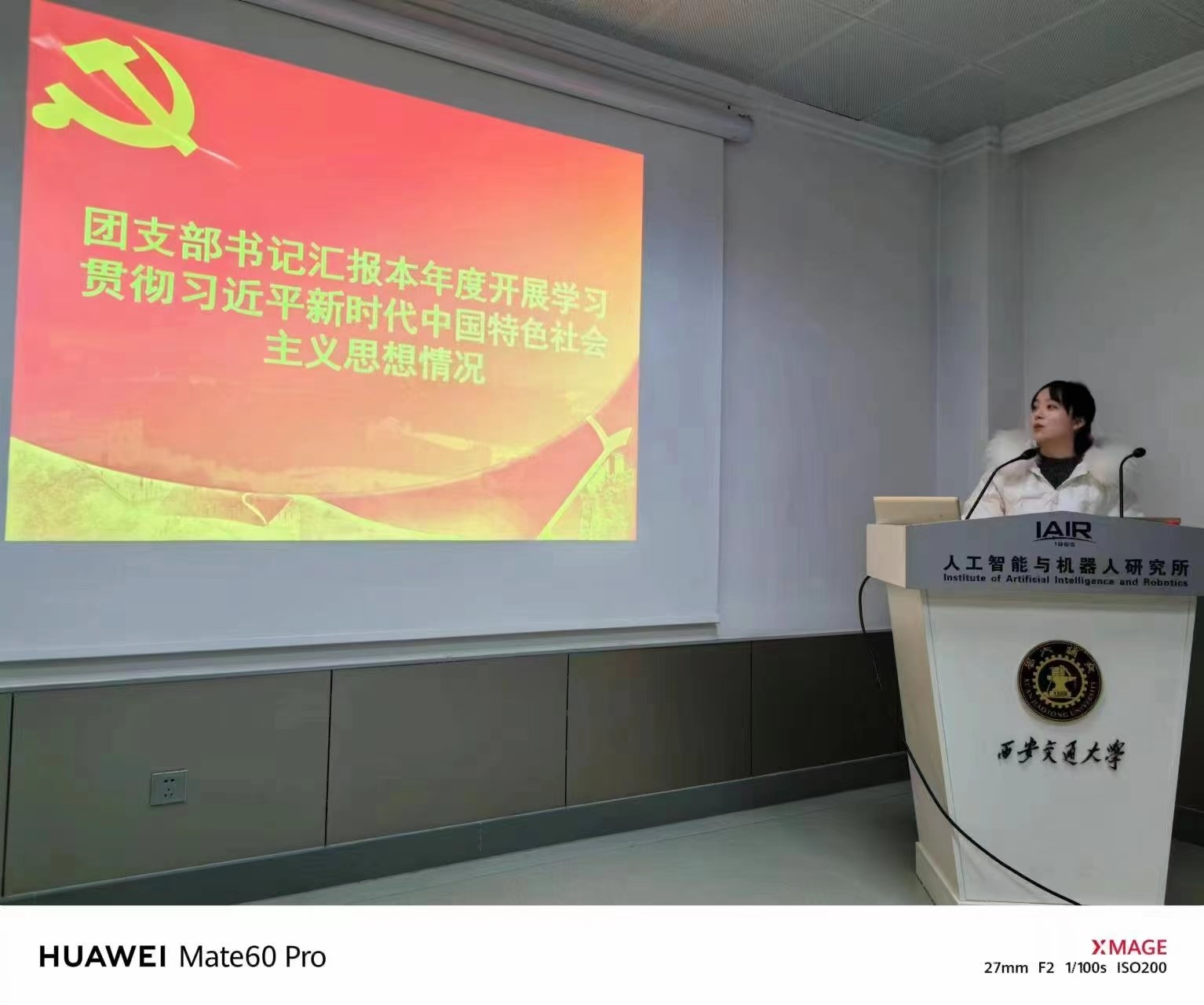 会议首先由张驰书记讲话。张老师对团支部工作表示了高度赞扬,强调了组织带领开展团队合作的重要性。团支部在团委的大力支持与帮助指导下,通过定期组织团课等方式,围绕习近平新时代中国特色社会主义思想的学习和贯彻,开展主题讨论、经验交流等形式多样的学习活动,高质量完成了团员与青年主题教育之思想旗帜、坚强核心、强国复兴和挺膺担当。会上,张老师对同学们的身体和心理健康情况给予关怀慰问,并希望同学们在未来生活中不仅要注重学业发展,还需要加强锻炼以提高个人的身体素质。