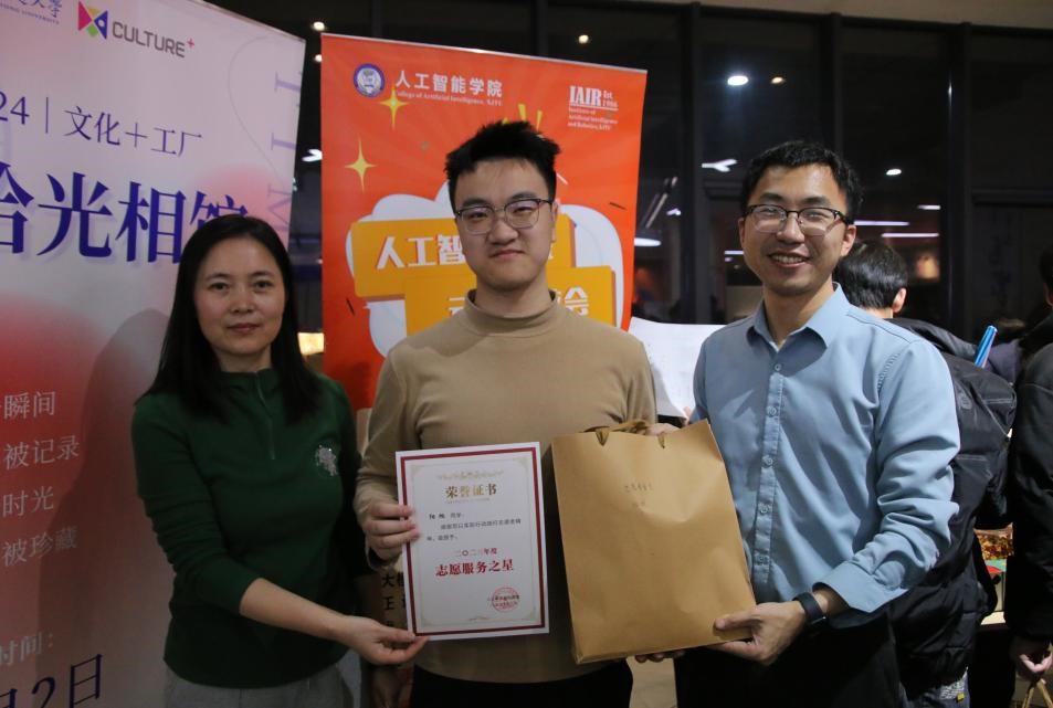 游戏同时进行了威廉希尔中国官网“志愿服务之星”和“优秀团支部”颁奖环节,李杰老师与张驰老师为阳旭等2023年在志愿服务活动表现突出的同学,及硕2247团支部等组织建设卓有成效的团支部颁发奖状和奖品,勉励他们继续努力,将榜样的力量进行传递,引导大家成为德智体美劳全面发展的新时代人才。