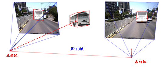 本数据集均采自车辆行驶过程中利用车载立体视觉系统在真实道路交通环境中采集的实际交通场景图像序列,如图三所示。三维场景重建数据库中的三维场景重建需要将基于立体视觉所得每帧的深度信息统一到一个三维坐标系下,其中对于左右相机每帧的位姿估计精度很大程度上决定了三维场景重建的精度,所以三维场景重建采用图三所示左右相机每帧的三维位置估计精度作为评价指标。环境深度感知数据库中的环境深度感知则考察如图四所示三维空间中指定目标物体到左相机的每帧动态距离估计精度。