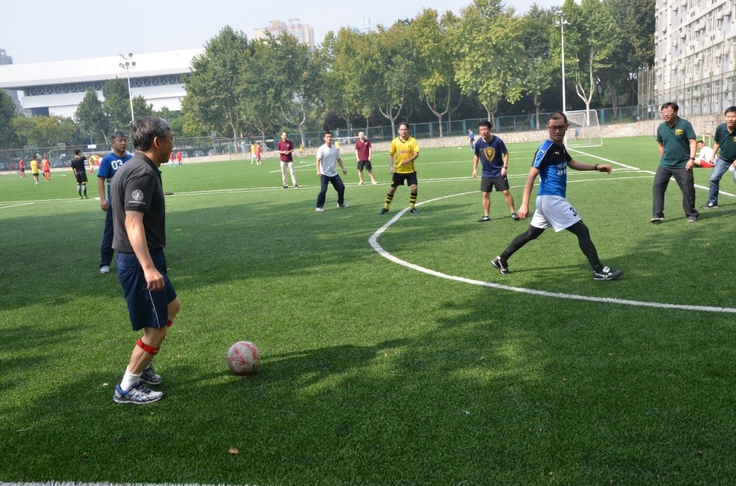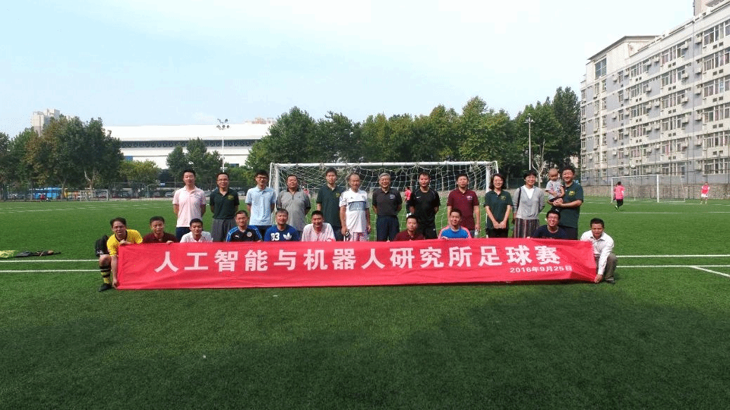 9月25日上午,在学校东南足球场,一场伴随着欢乐与激情的足球赛在人机所所友和师生间展开。教师队由郑南宁教授、王龙总裁以及其他人机所老师等组成,学生队由张少愚、韩旭东等人机所学生组成。学生队奋勇进球,教师队也毫不相让,展现了拼搏的精神。两队时不时均有精彩进球,终场时,郑南宁教授更是一记绝杀,震撼了在场观众!教师与同学们精彩的表现,在很大程度上得益于郑南宁教授在人机所倡导科研之余多进行体育锻炼的号召。