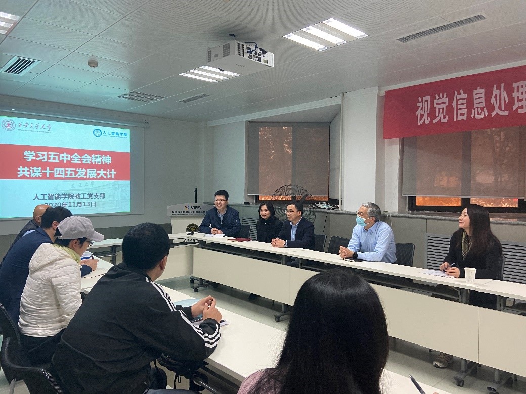 11月13日下午,威廉希尔中国官网教工党支部召开了以“学习五中全会精神,共谋十四五发展大计”为主题的学习讨论会议,支部党员共同学习和领会大会精神,并结合自身的实际体会进行了深入的交流。郑南宁教授、电信学部党委梁莉书记、威廉希尔中国官网党政领导、威廉希尔中国官网教工党员现场或线上参加了此次会议。威廉希尔中国官网党总支兰旭光书记主持会议。
