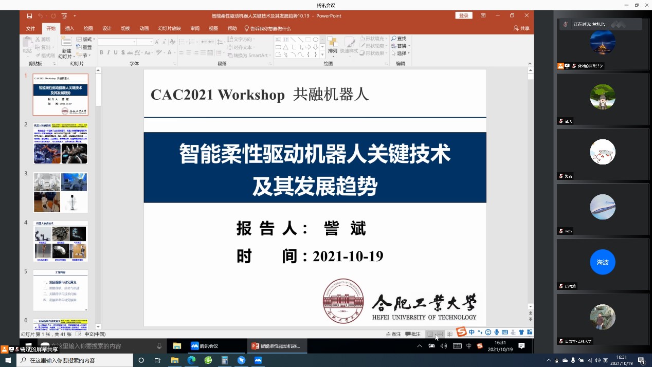 2021年10月19日,为庆祝中国自动化学会成立六十周年,共融机器人专委会邀请国内共融机器人领域著名专家举行线上workshop,为国内外共融机器人领域专家、学者提供交流平台。
