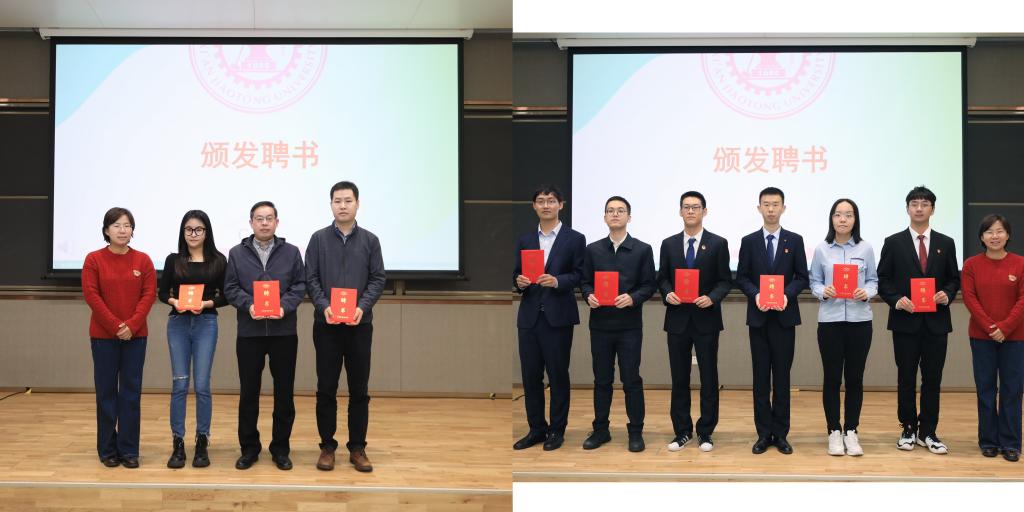 张楠秘书长代表中国自动化学会为西安交通大学学生分会授牌、授旗和颁发聘书。吴宏春常务副院长、兰剑副处长代表学校接收授牌和授旗,并一起为当选的老师和同学们颁发聘书。中国自动化西安交通大学学生分会第一届执行委员会主席冯骅飙同学代表执委会进行就职宣誓,并宣读未来工作计划。他表示学生分会将在中国自动化学会和西安交通大学的共同指导下,积极利用学会平台资源,举办一系列特色学术活动,稳步推进学生会员发展工作,并加强学生分会自身建设。