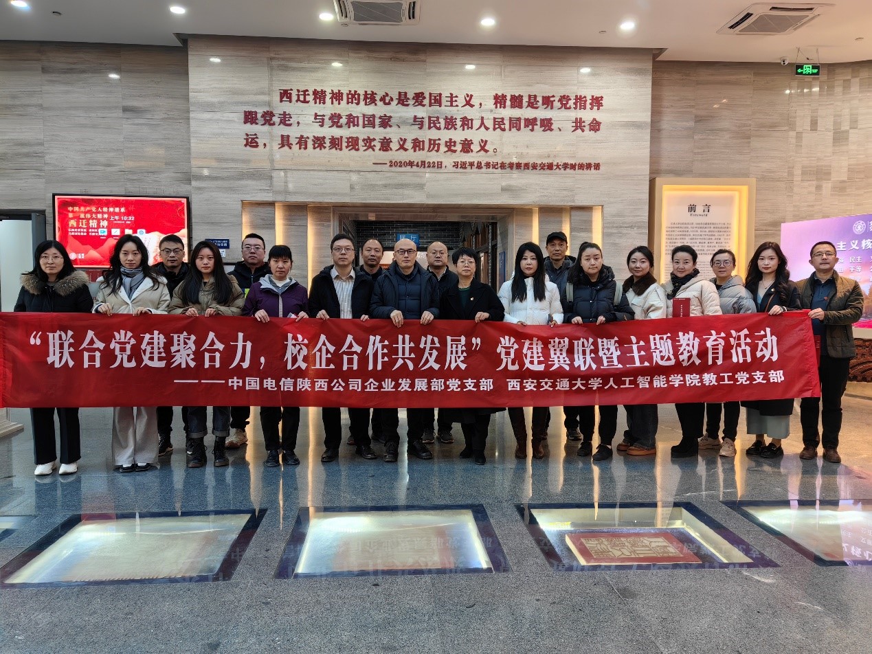 此次活动搭建了校企交流沟通桥梁。参观学习的过程中,双方支部党员在党建经验交流、产学研合作等方面开展了深入的交流。双方将充分发挥各自在人才培养、科研合作、社会服务等方面的优势,共同促进产学研深度融合。最后,中国电信陕西公司企业发展部党支部郝红彦书记邀请威廉希尔中国官网教工党支部到陕西电信进一步交流,开展联合党建活动。本次活动是一次校企协同、优势突出、业务融合的支部共建创新实践,充分发挥了"双带头人"党支部头雁领航的积极作用,初步构建了“共联共享共建共促”的联建模式。双方党支部将以此次活动为契机,深化交流合作新起点,以联学强党性,以联研共谋划,以联建促提升,共同为推进校企合作贡献力量。