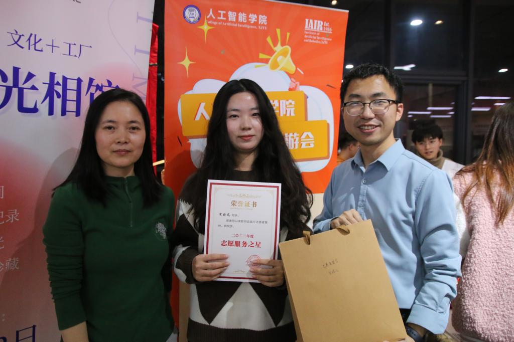 游戏同时进行了威廉希尔中国官网“志愿服务之星”和“优秀团支部”颁奖环节,李杰老师与张驰老师为阳旭等2023年在志愿服务活动表现突出的同学,及硕2247团支部等组织建设卓有成效的团支部颁发奖状和奖品,勉励他们继续努力,将榜样的力量进行传递,引导大家成为德智体美劳全面发展的新时代人才。