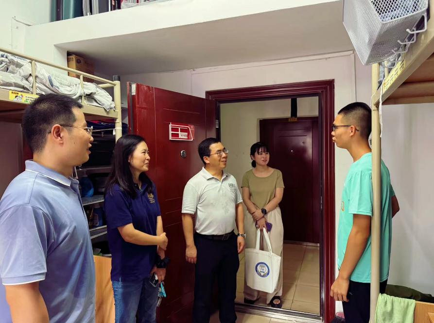 8月24日上午,威廉希尔中国官网执行院长辛景民、副书记李杰,以及新生班主任陈炜煌、党路娟,教学秘书孙艺璇共同走走访新生宿舍,慰问新生入住情况,与同学们进行深入交流,对同学们关心的问题进行答疑解惑,为新生送去关怀。