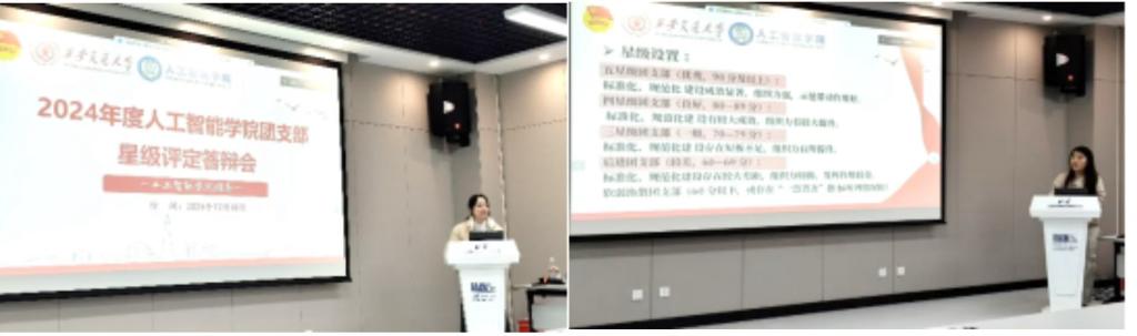 会议伊始,学院团委书记张驰助理教授老师首先对各支部在过去一年的辛勤付出和取得的成果给予了高度肯定,伍虹颖书记和席媛媛书记简要介绍了支部星级评定的标准和流程。此次参与答辩的支部包括博士生第一、第二团支部,2022级硕2245、2246、2247和2248团支部,2023级硕3248、3249、3250和3251团支部共10 个支部。随后学院的十个团支部分别从班子建设、团员管理、组织生活、制度落实等方面的工作和成果进行了全方位的展示。