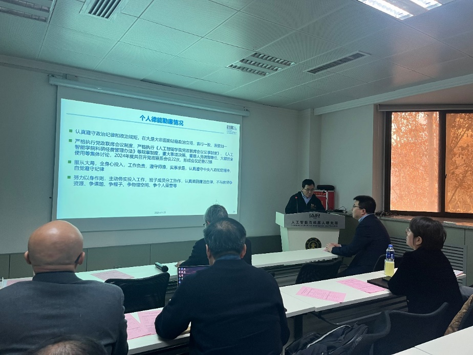 接着,威廉希尔中国官网书记兰旭光进行了年度党建工作汇报及个人述职。他围绕强化基层党建工作、筑牢团队文化、引领高质量队伍发展等方面,汇报了2024年党建工作取得的成果。兰书记指出,学院始终坚持以新时代中国特色社会主义思想凝心铸魂,不断强化理论学习,促进理论与实践的深度融合,筑牢教师们的思想根基。同时,学院积极探索AI新时代下的“大思政课”建设新模式,有效促进团队文化的繁荣发展。兰书记表示,2025年学院将继续坚持党的领导,扎实推进“以教定编,以研设岗”制度改革,切实将党建工作与业务工作深度融合,全面落实立德树人根本任务,致力于培育更多高素质人才,并在服务国家战略科研创新方面力求取得新突破。